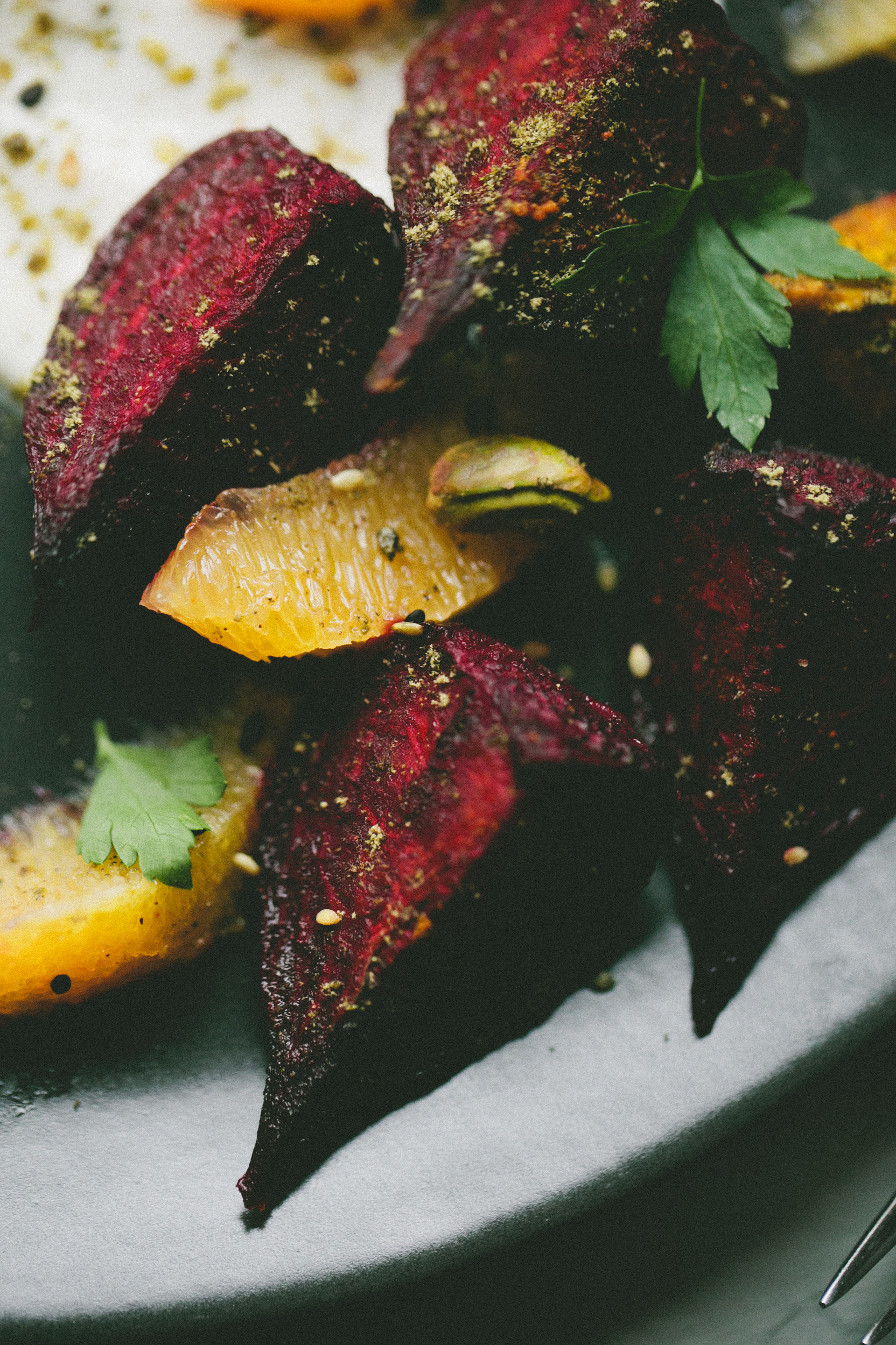 Za'atar Roasted Beets with Honeyed Yogurt, Orange and Pistachio